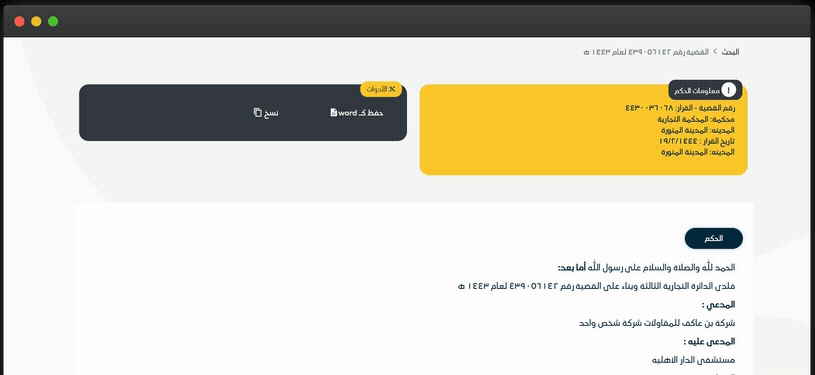في موقع "حقوقي" تسهّل على المستخدمين الاحتفاظ بالمعلومات القانونية المهمة، مما يوفر لهم مرونة في تنظيم البيانات والعودة إليها لاحقًا. من خلال هذه الميزة، يمكن للمستخدمين نسخ المحتوى الذي يهمهم مباشرةً من نتائج البحث، وحفظه كملف Word قابل للتحرير. هذه الخاصية مفيدة للمحامين والباحثين الذين يحتاجون إلى تجميع عدة مصادر في مكان واحد، مما يسهل عملية المراجعة والاستشهاد لاحقاً.